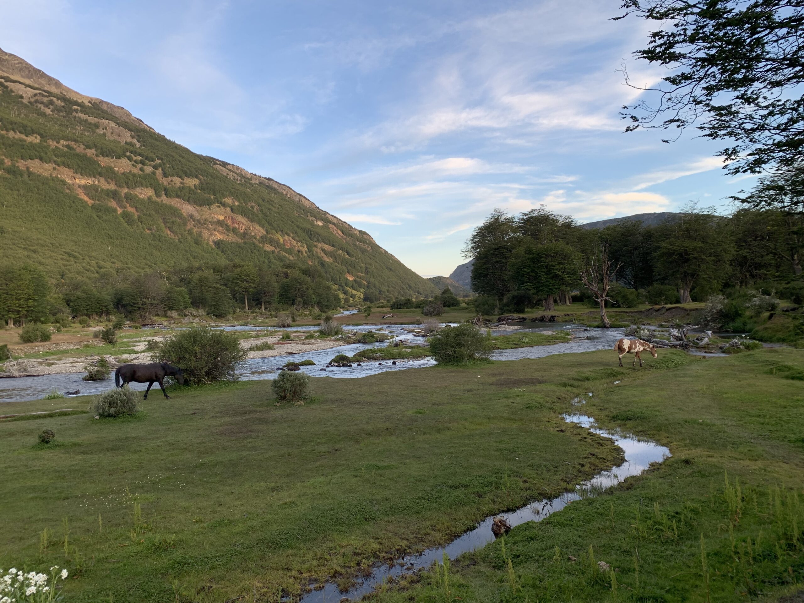 Le camping dans le parc national de la terre de feu est magique, magnifique: les chevaux sauvages se promènent librement, la matin peu apporter des sommets fraichement enneigés, et le bruit de la rivière nous aura accompagné comme une douce berceuse.