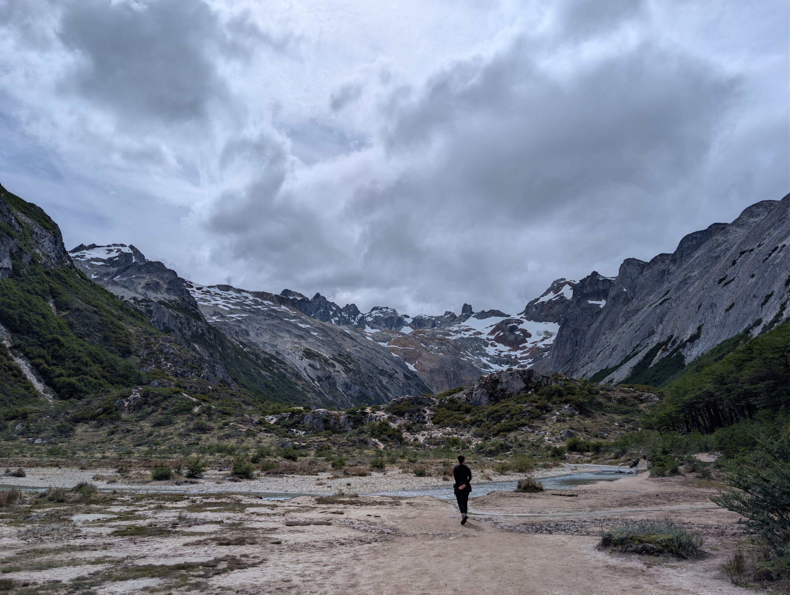 La distance entre Buenos Aires et Ushuaïa est… d’un peu plus de 3000 kilomètres…! Et laissez-moi vous dire que de la pampa, y’en a. C’est donc très désertique, où le paysage se déroule continuellement sous les mêmes couleurs, parsemé d’émeus et de Guanacos en quantité niveau “écureuils au Québec”. Le moment est presque méditatif, jusqu’à ce que tranquillement le sable et les courts bosquets secs soient remplacés par les arbres verts et les montagnes tressées de petits ruisseaux.