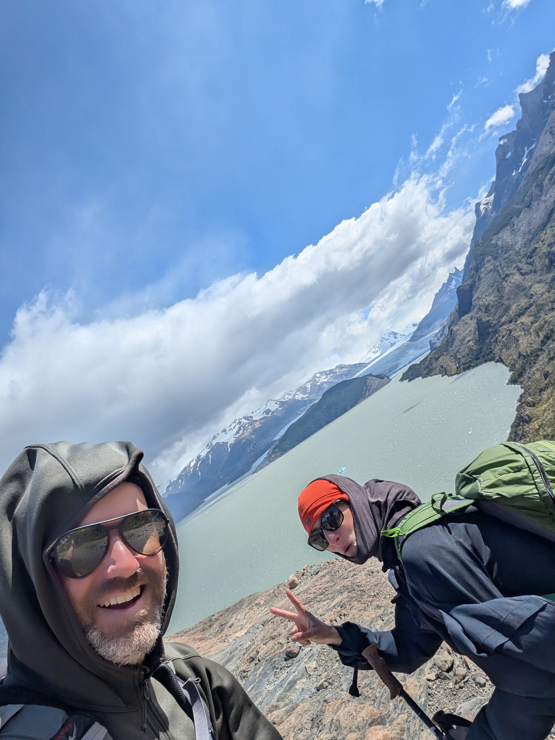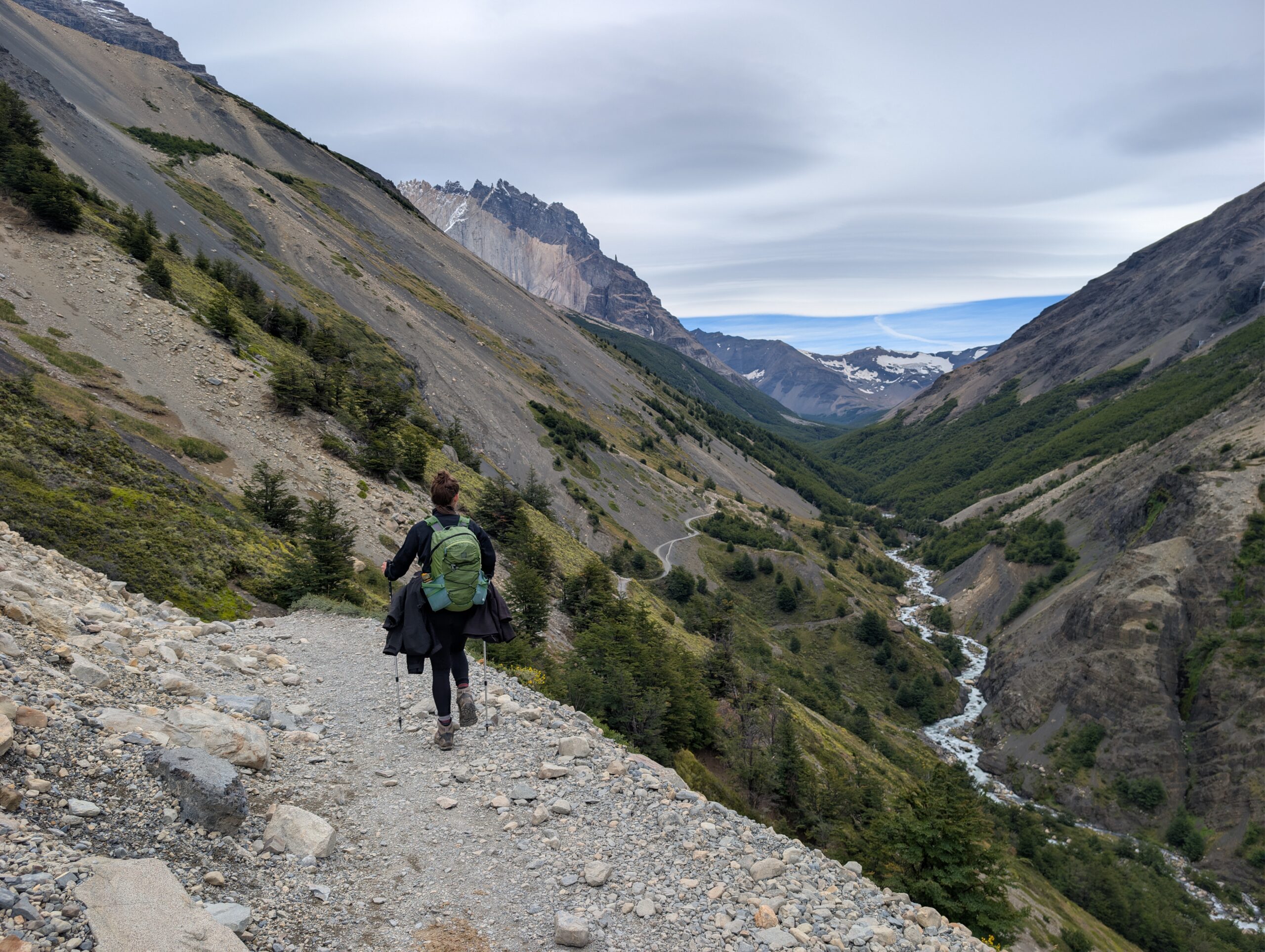 Lors de notre deuxième journée, nous nous dirigions vers le lac Grey et son glacier, tout autant nommé Grey. Cette coquette petite randonnée, magnifique, nous aura fait vivre le vif vent de Patagonie. Celui qui vous fait assurément perdre casquettes et chapeaux s’ils ne sont pas attachés, et qui vous fait potentiellement arrêter votre avancée par moment afin de vous permettre de vous concentrer sur votre équilibre et vous assurer de ne pas tomber.
