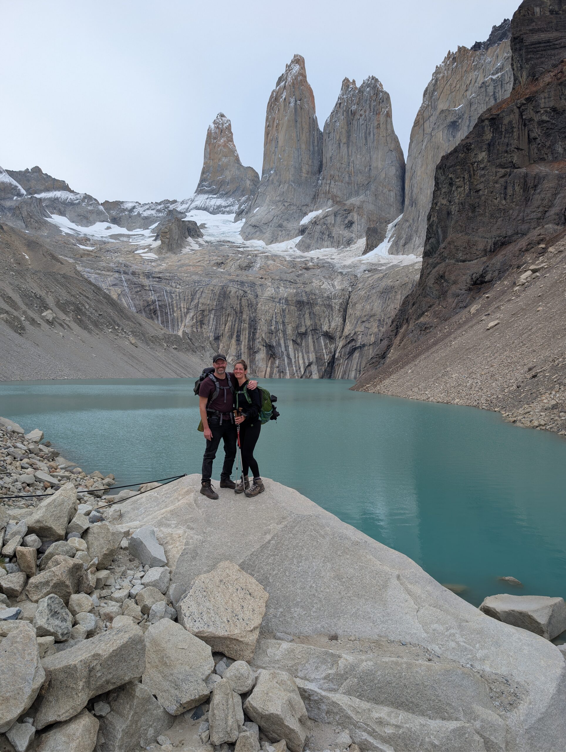 Notre première journée nous a donc amené vers la base des fameuses tours (torres) donnant leur nom au parc. Probablement la section la plus marchée, parce que la plus caractéristique de l’endroit. Et la plus accessible en autobus ou voiture. Nous avons été très chanceux avec la météo : pas de pluie ni de vent, malgré que la Patagonie soit reconnue pour être complètement imprévisible et servir régulièrement un cocktail météo diversifié.