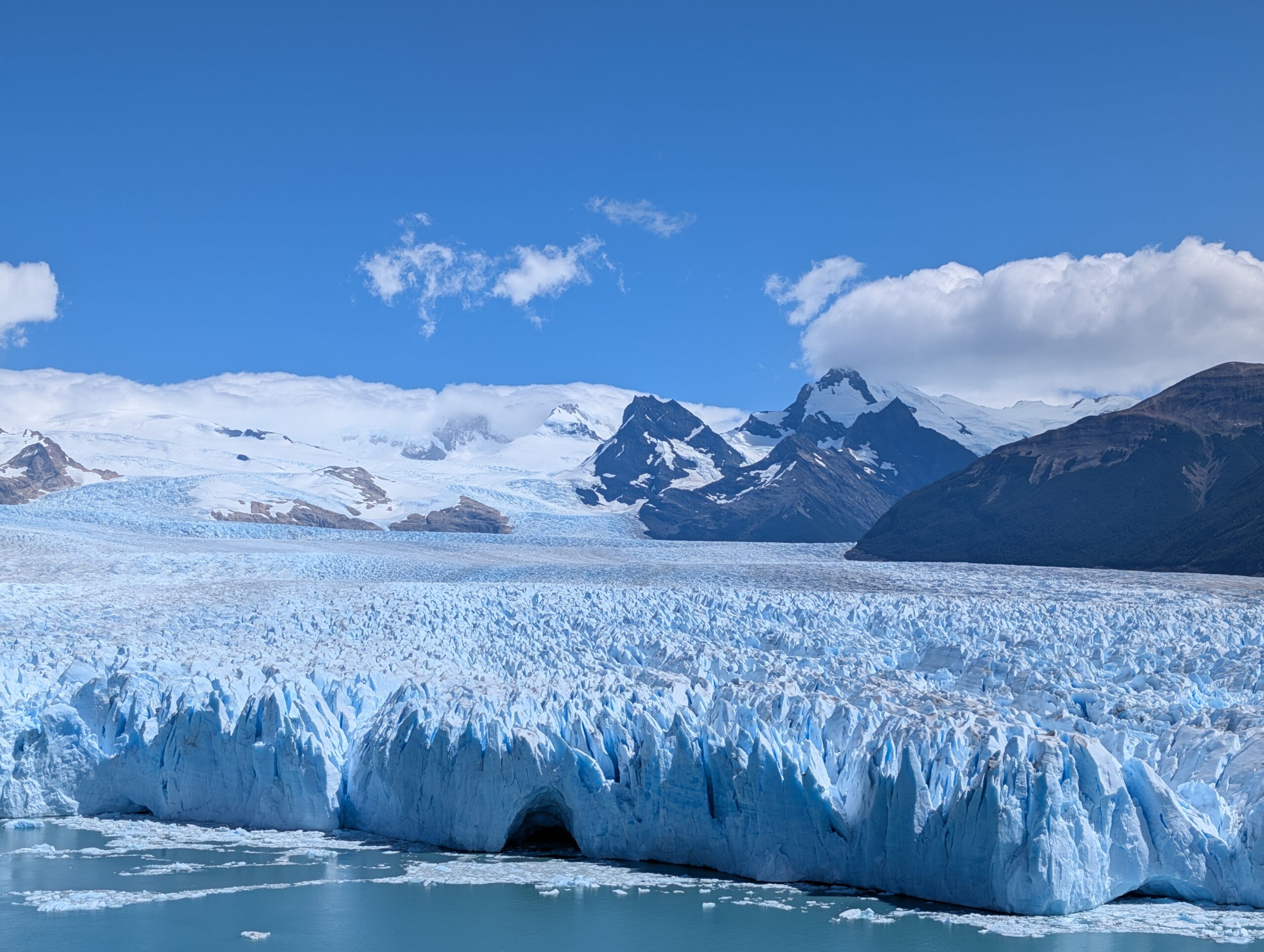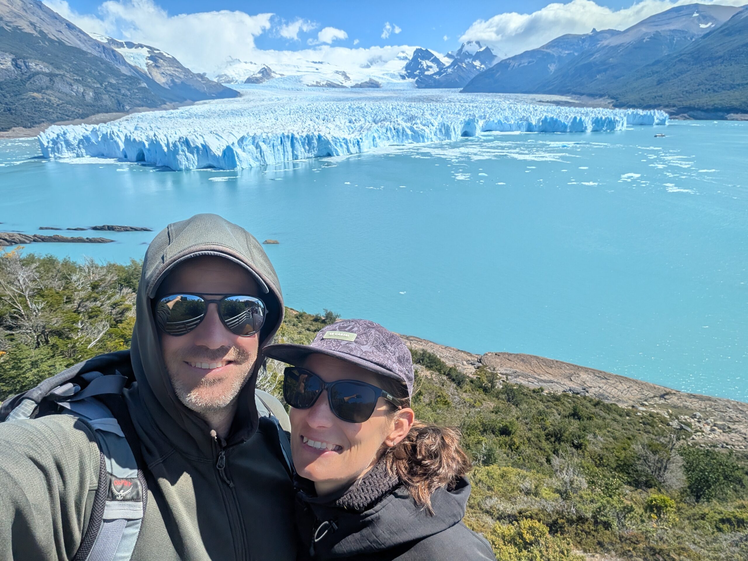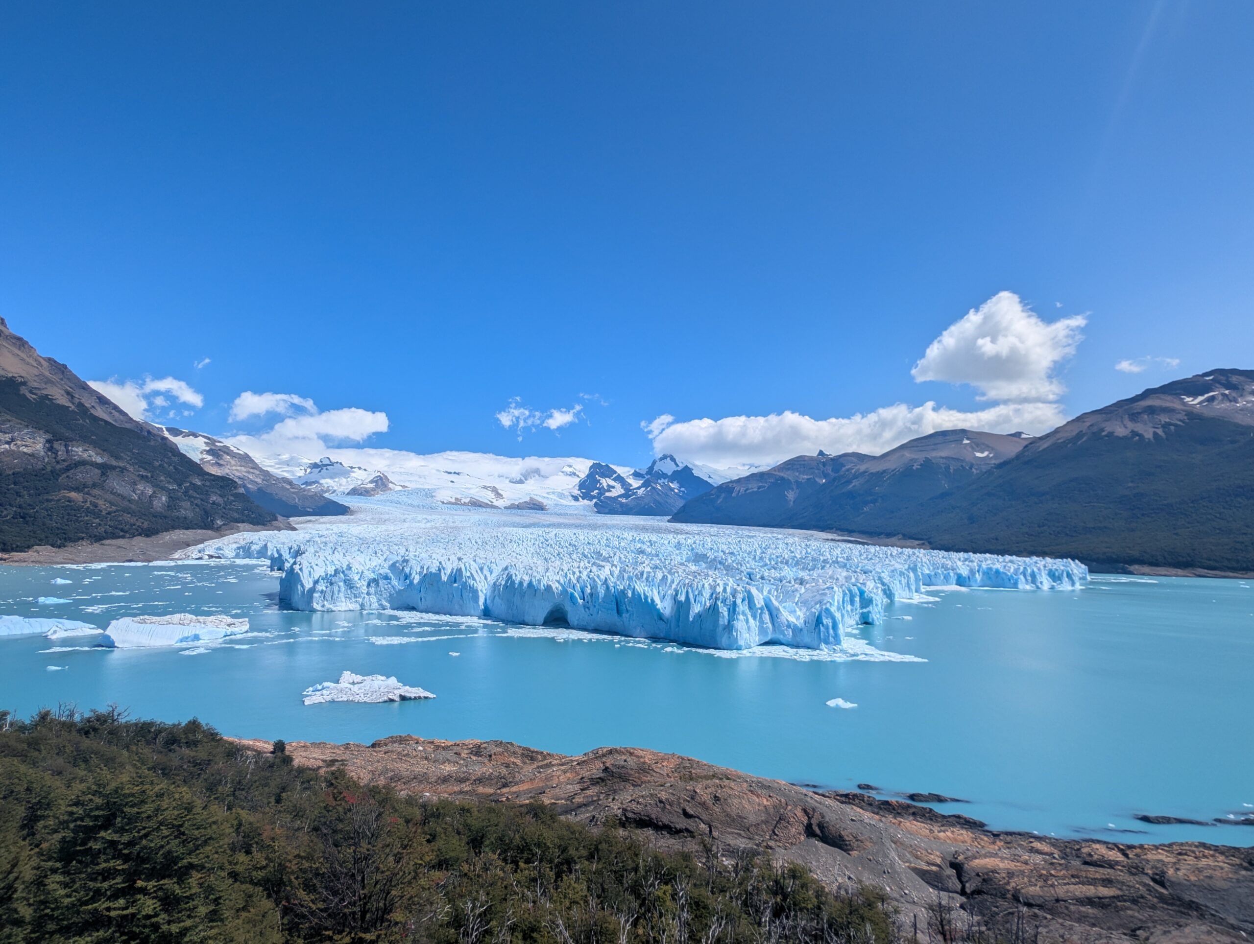 El Calafate, la ville, propose une ambiance très intéressante pour des campeurs en recherche d’une petite pause. Petits hôtels, restos et pubs, où flâner est certainement permis. Nous y sommes restés deux nuits, question de refaire le plein de vêtements propres, de nourriture et de petites soirées relaxes. Son attrait principal est le glacier Perito Moreno à 1h de là. Le glacier en lui-même a une superficie d’environ 250 km², ce que l’on visite est plutôt l’une de ses coulées. C’est bizarrement très cocasse de traîner sur les passerelles qui nous permettent de le regarder sous tous les angles. On l’entend craquer, souffler, bouger. Et une fois de temps en temps, un morceau se décroche et va flotter un peu plus loin, occasionnant des “ooohhhh” et des “aaahhhhh” parmis les visiteurs. L’eau est d’un bleu laiteux qui donne envie de s’en servir un verre.