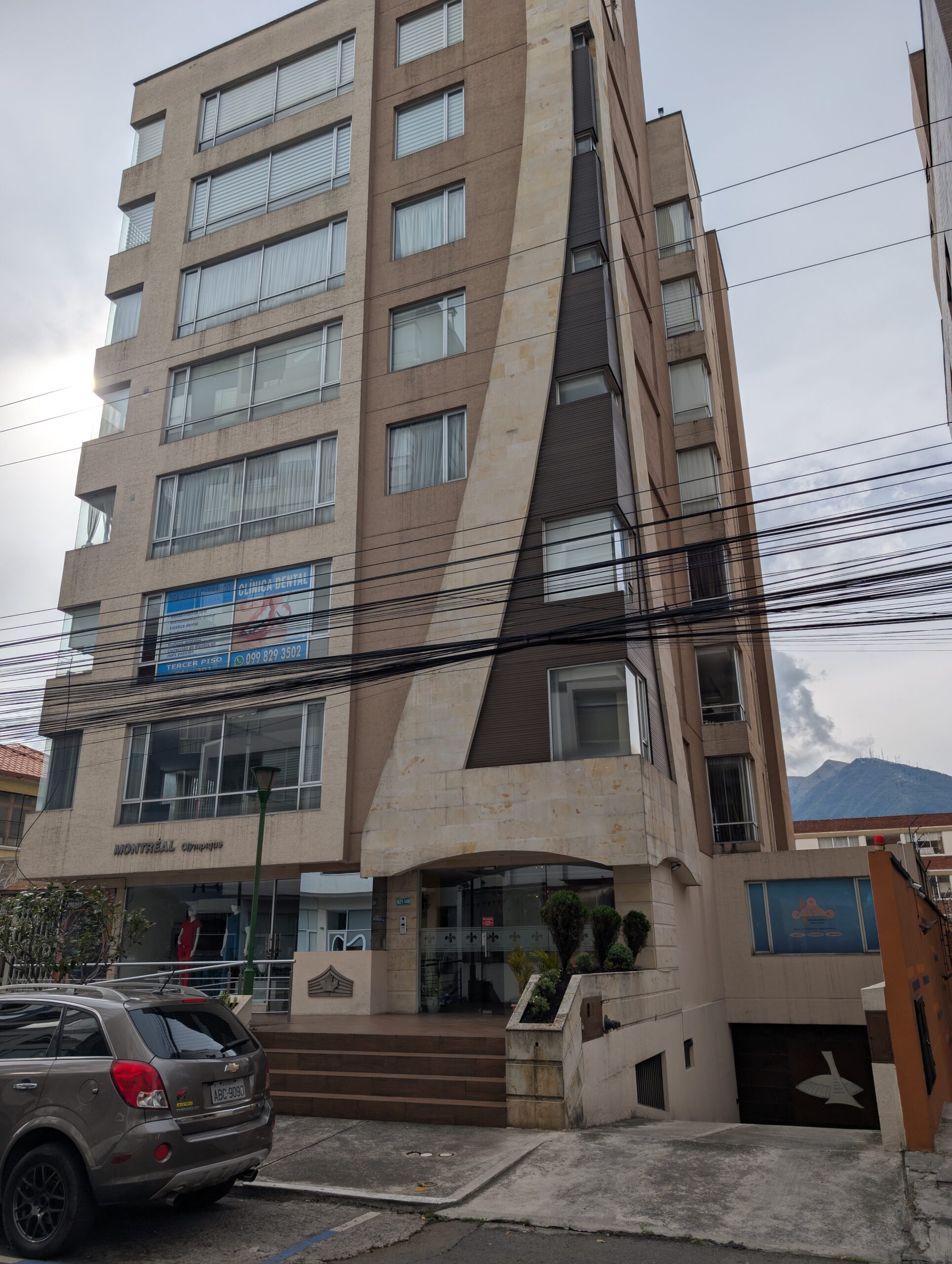Nous avons trouvé une incongruité dans le paysage écuadorien, durant notre déambulation urbaine. Nous n’avons aucune idée de pourquoi cet édifice porte ce nom et ce logo, mais il n’y a pas de doute, c’est chez nous, ça! Nous sommes restés à le regarder quelques minutes, incrédules… Si jamais quelqu’un sait pourquoi cet immeuble existe, faites-nous part des informations, nous demeurons curieux.