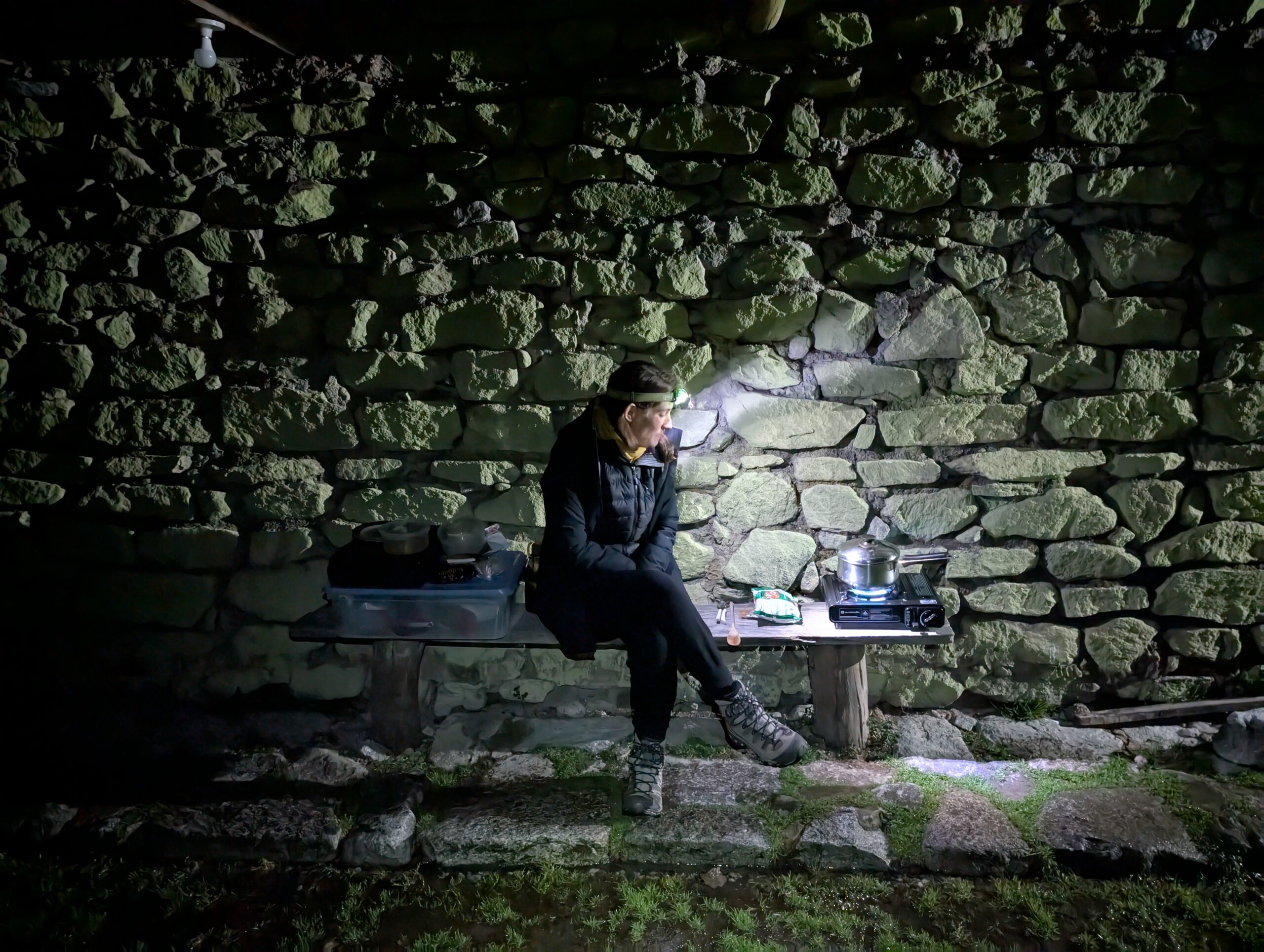 Arrivés sur place, nous déboursons quelques soles pour un droit d’accès de quelques jours, et puis on nous désigne un endroit gazonné où l’on peut piquer notre tente. L’endroit est entretenu d’une quotidienne façon par les vaches du coin, qui nous laissent le tout aussi bien coiffé qu’un green de golf. La vue, mêlée de l’ambiance que la brume apporte, a son petit côté apaisant. Ce sera donc une bonne nuit (surtout pour moi, Antoine ayant quelques enjeux de sac de couchage et de mal de l’altitude), qui nous permettra de s’activer le lendemain.