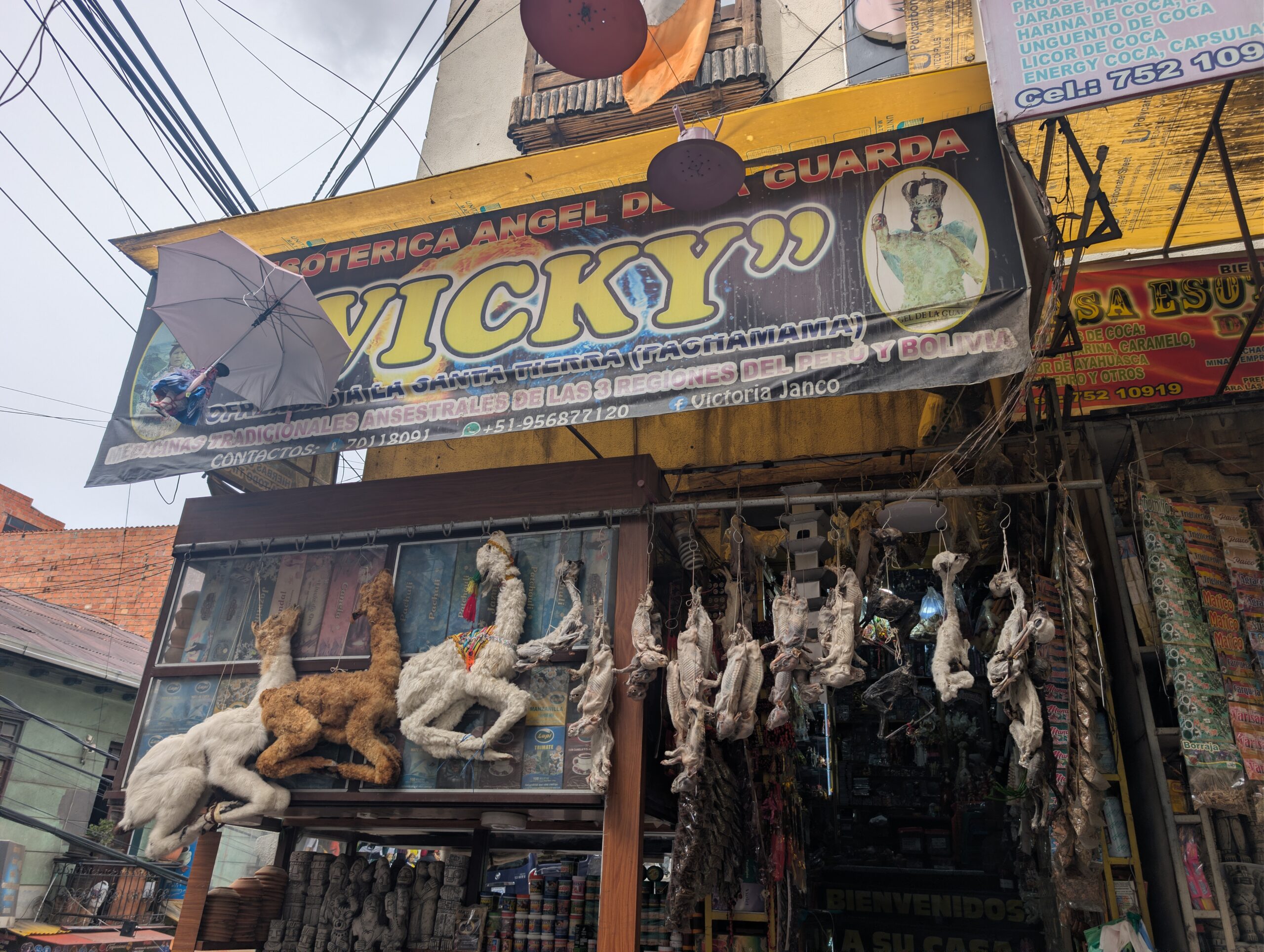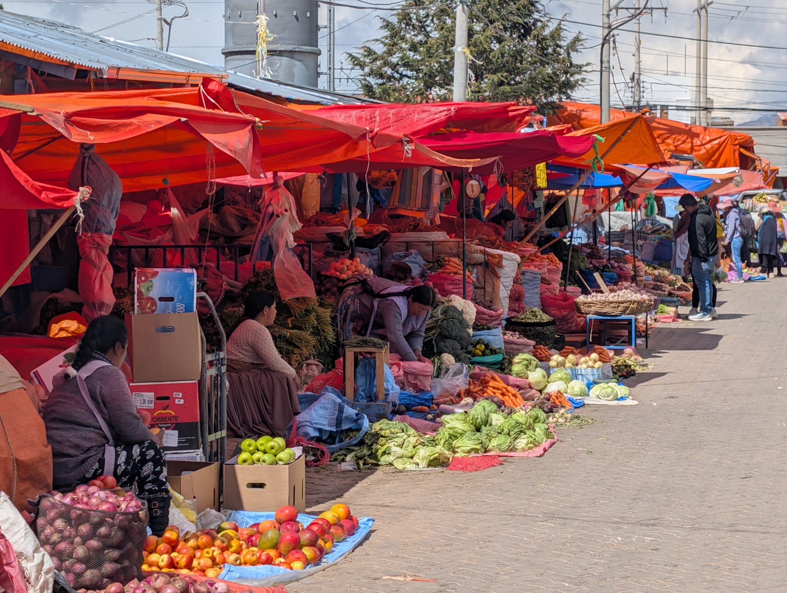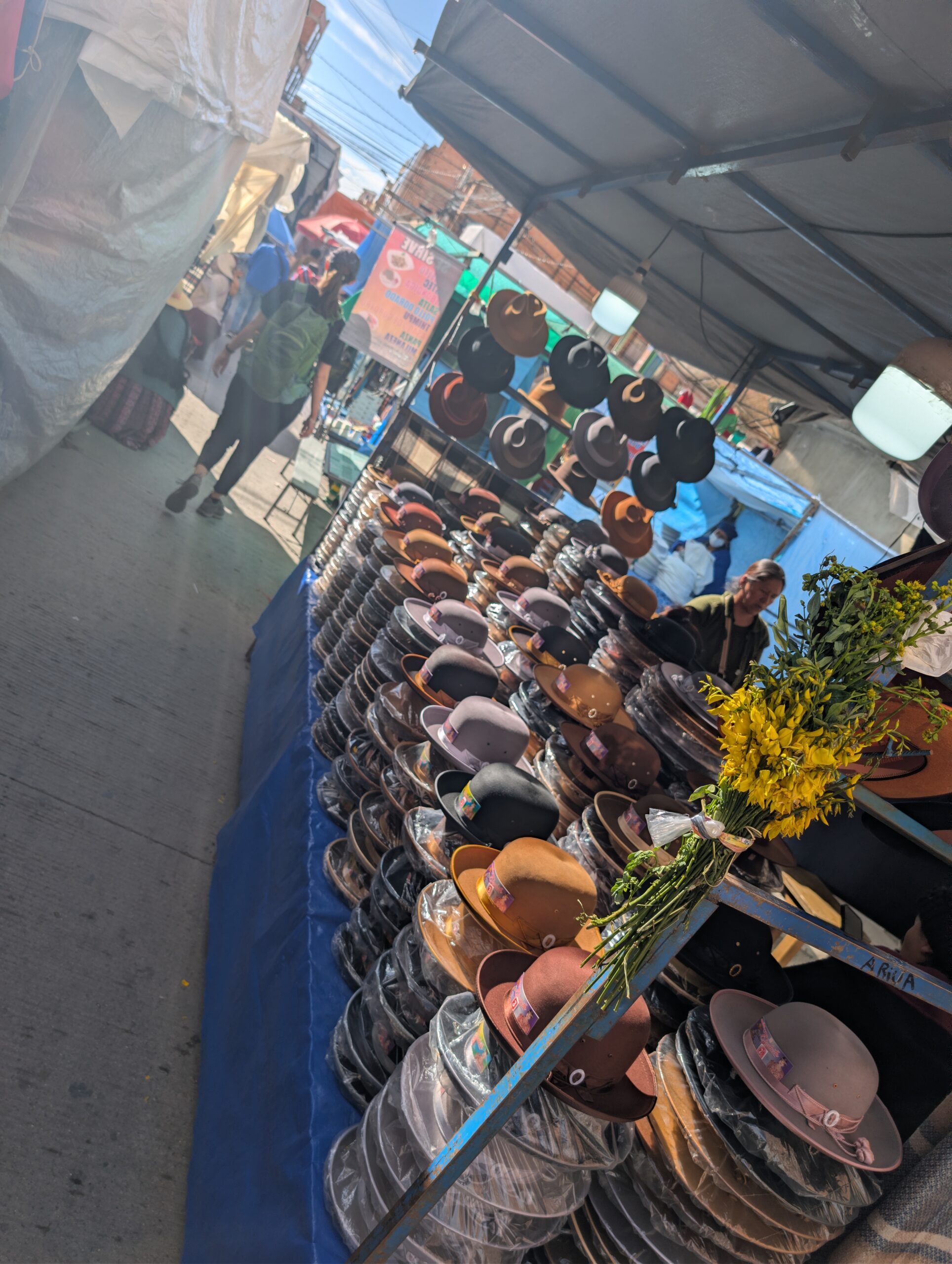 La Paz est un mélange entre Medellín et l’Inde: l’enveloppe architecturale rappelle cette magnifique ville de Colombie, alors que l’effervescence et la densité de population rappelle l’Inde. Lors d’une journée de marche, nous sommes remontés par téléphérique vers les hauteurs, appelées El Alto, afin d’en faire un petit tour sur son bord pour redescendre à pied vers le centre de la ville. Et bien, nous nous sommes retrouvés dans un marché, qui aura grignoté des kilomètres et des kilomètres de rues. Ici, vous pouvez tout trouver. Nourriture, vêtements, pièces de voiture, tout. Neuf ou usagé. Et ce qui donne une couleur, ma foi, colorée… ce sont les cholitas. Depuis plusieurs pays nous croisons des femmes dignes, parées pour de grands événements même pour aller au champs, mais ici, on a rajouté une couche. Littéralement, car les femmes, surnommées cholitas, portent plusieurs couches de tissus en guise de jupe, accentuant de façon artificielle la courbe de leurs hanches. Un symbole de fertilité, qui leur est parfois difficile de faire passer entre deux tables. Ces jupes bouffantes auraient apparemment été, selon notre guide, adoptées par les femmes autochtones en modèle des Espagnoles qui arrivaient par bateau à l’époque de la colonisation, avec leurs amples robes de la Renaissance. Leur chapeau melon viendrait également de cette colonisation. Ces femmes ont longtemps été stigmatisées, mais ce terme qui était initialement péjoratif est maintenant un symbole de fierté et d’affirmation. Elle embrassent tous ces symboles, qui sont ironiquement intimement liés au passé colonial de la région.